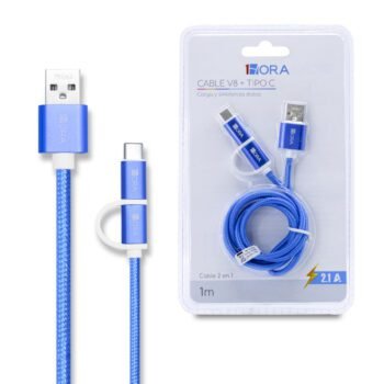CABLE DE DATOS V8/TIPO C 2.1A CAB218A DOS EN UNOAZUL (200)